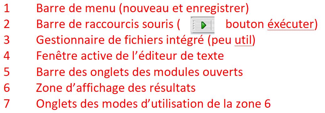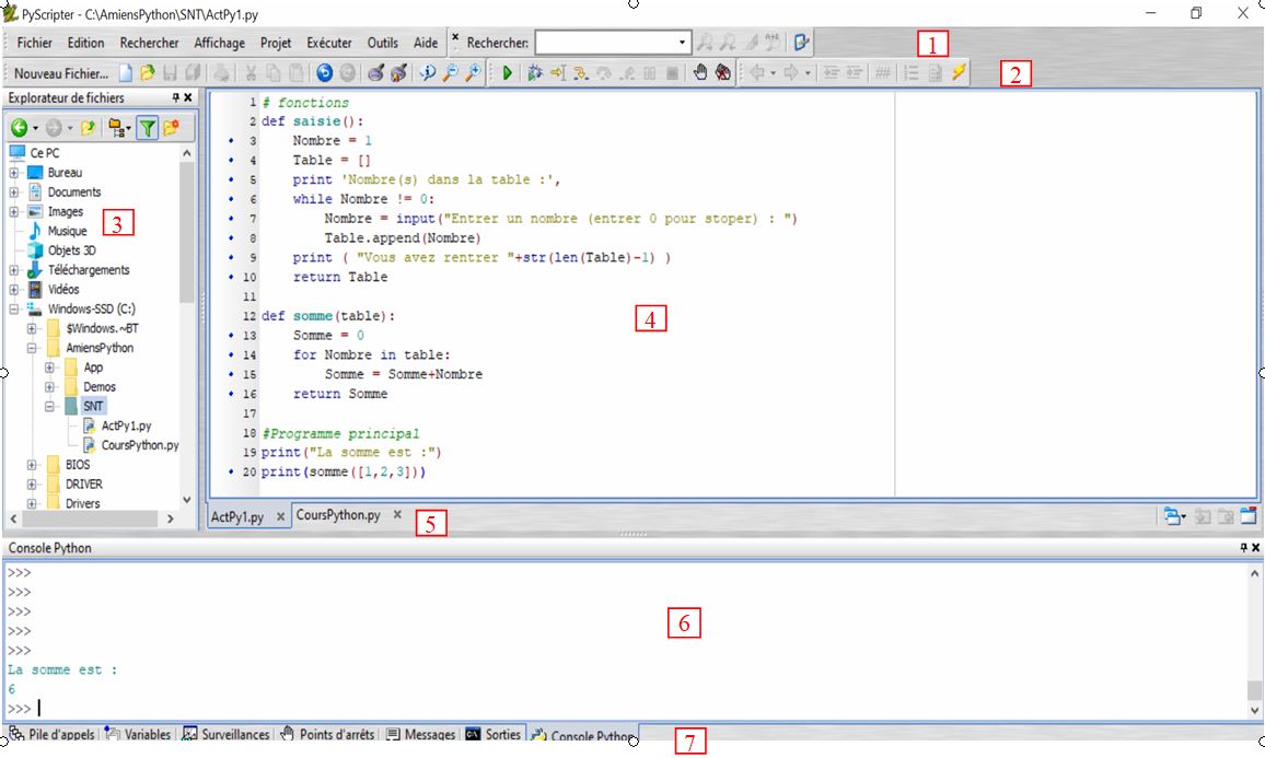- Ouvrir AmienPython. L'écran ci dessous s'affiche (sans le programme en zone 4)